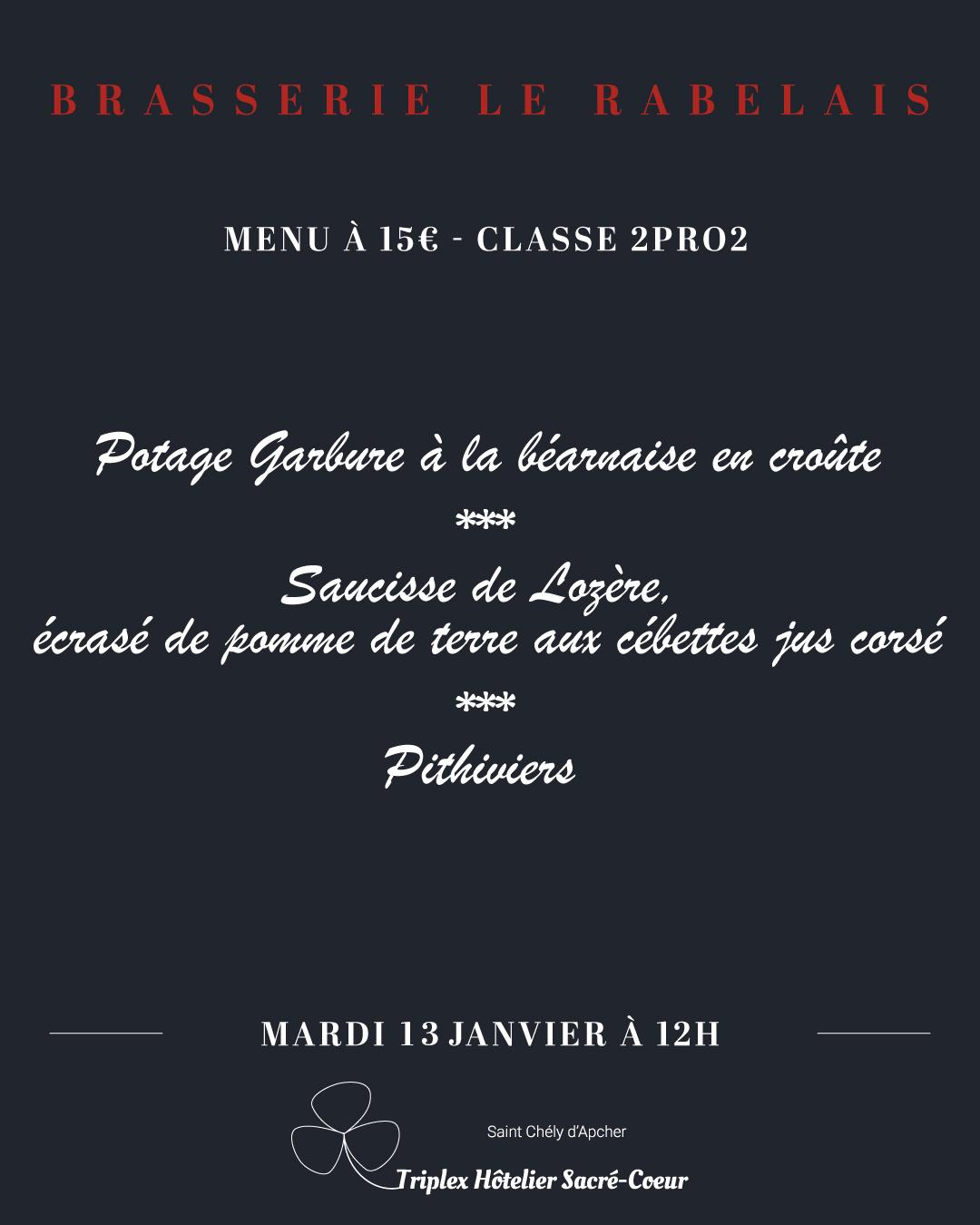 Nous vous rappelons que les menus proposés sont uniques et qu'il ne nous est pas possible de vous proposer de plats alternatifs.