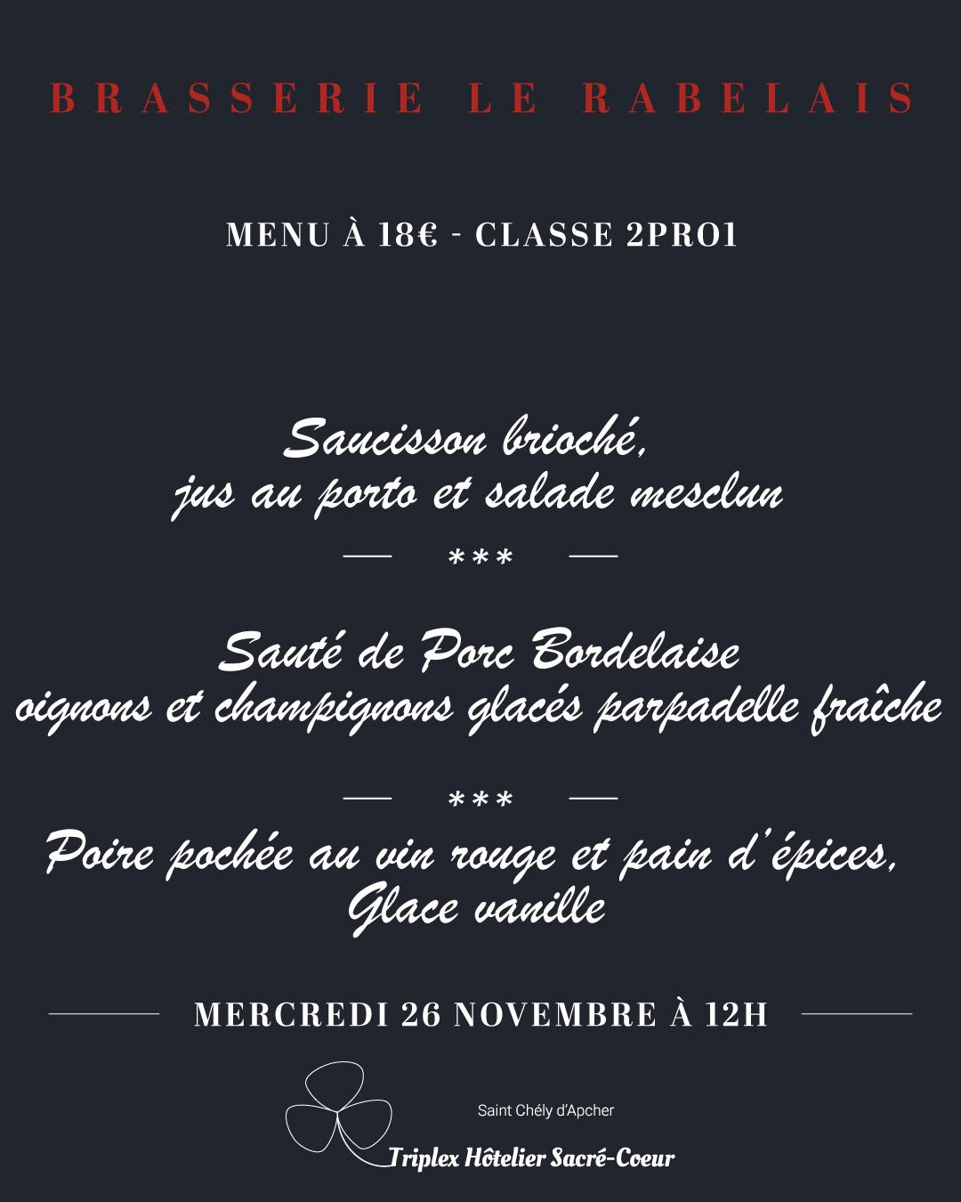 Nous vous rappelons que les menus proposés sont uniques et qu'il ne nous est pas possible de vous proposer de plats alternatifs.