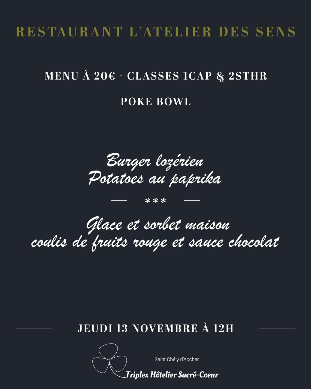 Nous vous rappelons que les menus proposés sont uniques et qu'il ne nous est pas possible de vous proposer de plats alternatifs.