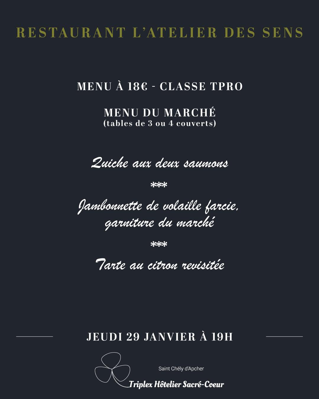 Nous vous rappelons que les menus proposés sont uniques et qu'il ne nous est pas possible de vous proposer de plats alternatifs.