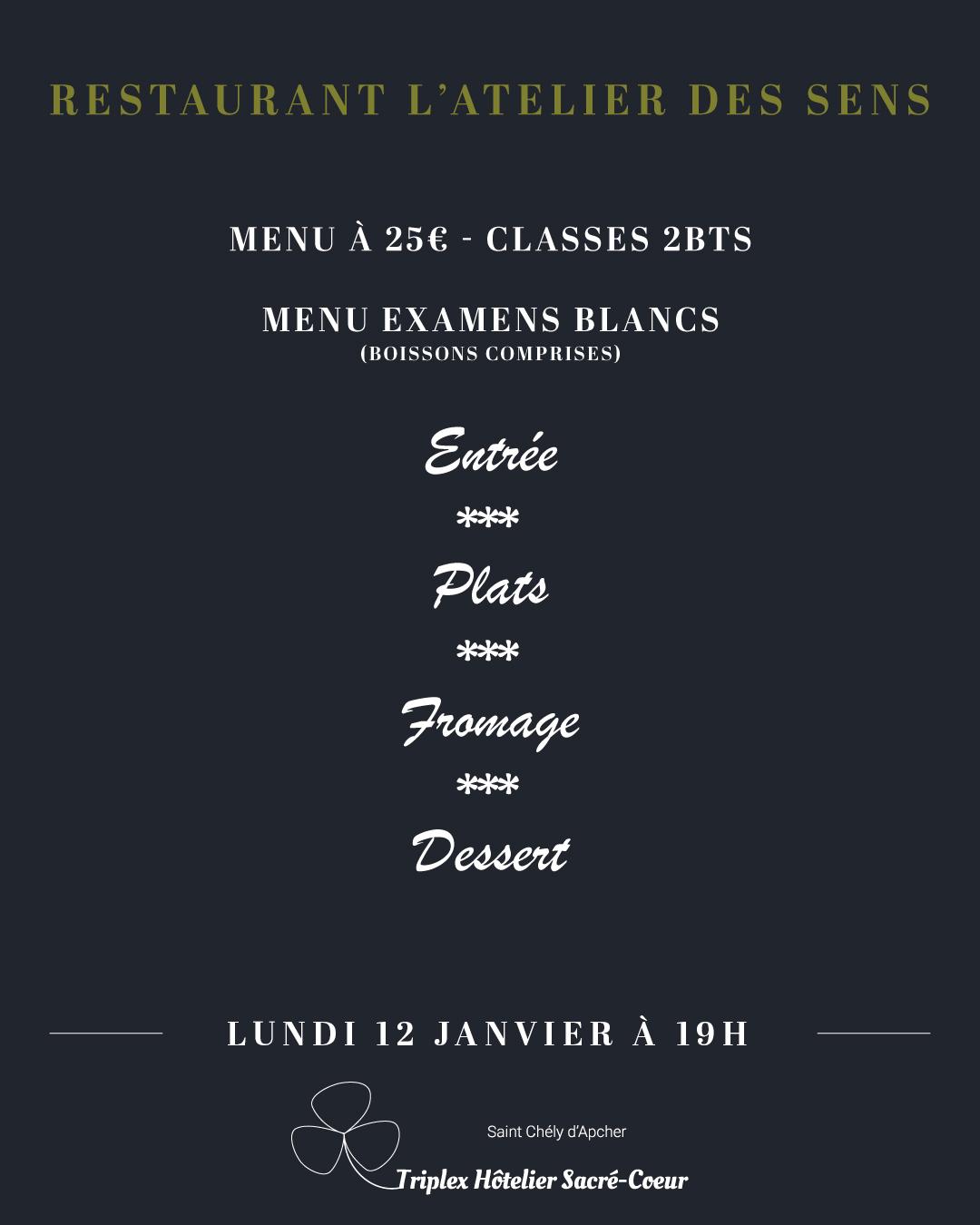 Nous vous rappelons que les menus proposés sont uniques et qu'il ne nous est pas possible de vous proposer de plats alternatifs.