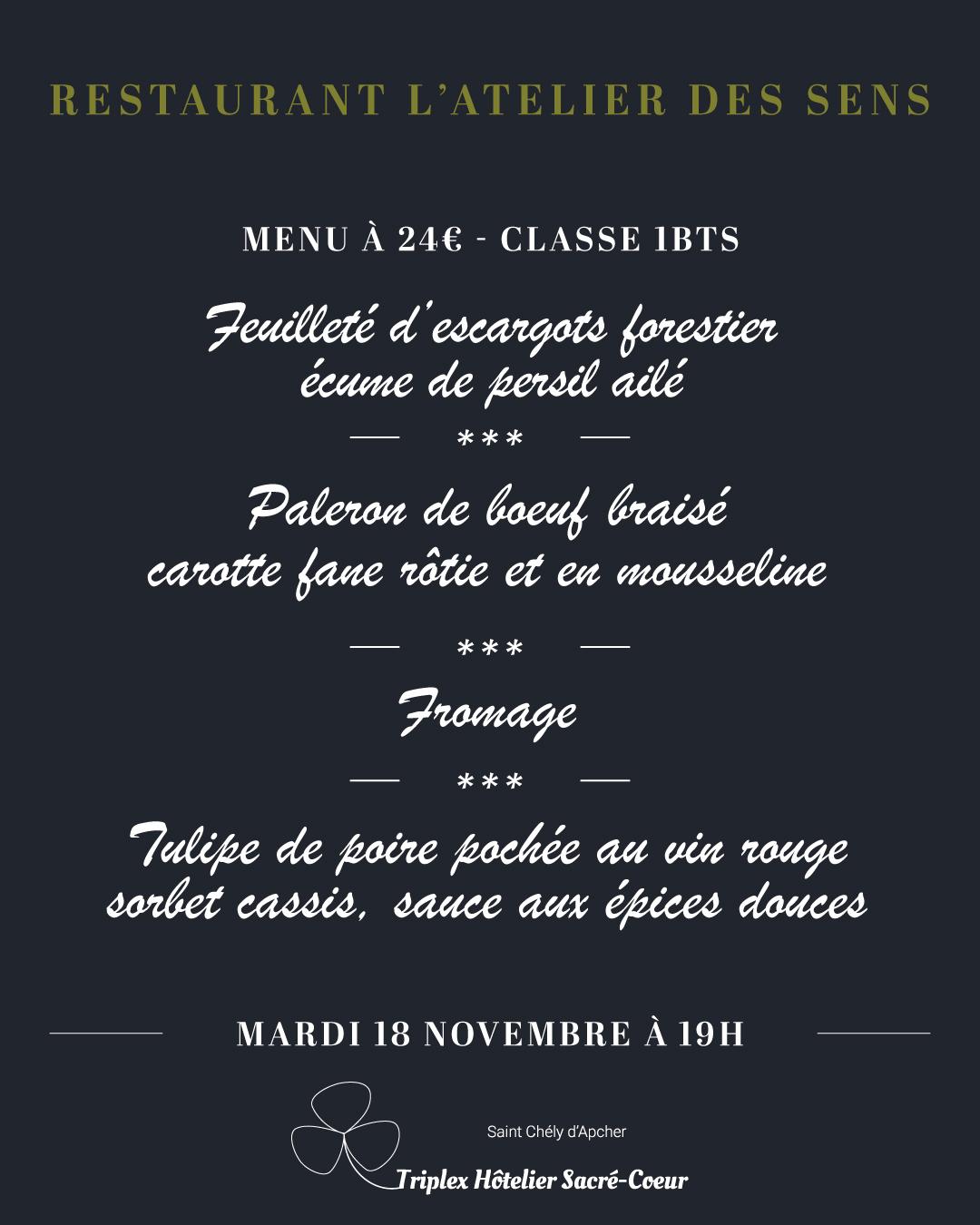 Nous vous rappelons que les menus proposés sont uniques et qu'il ne nous est pas possible de vous proposer de plats alternatifs.