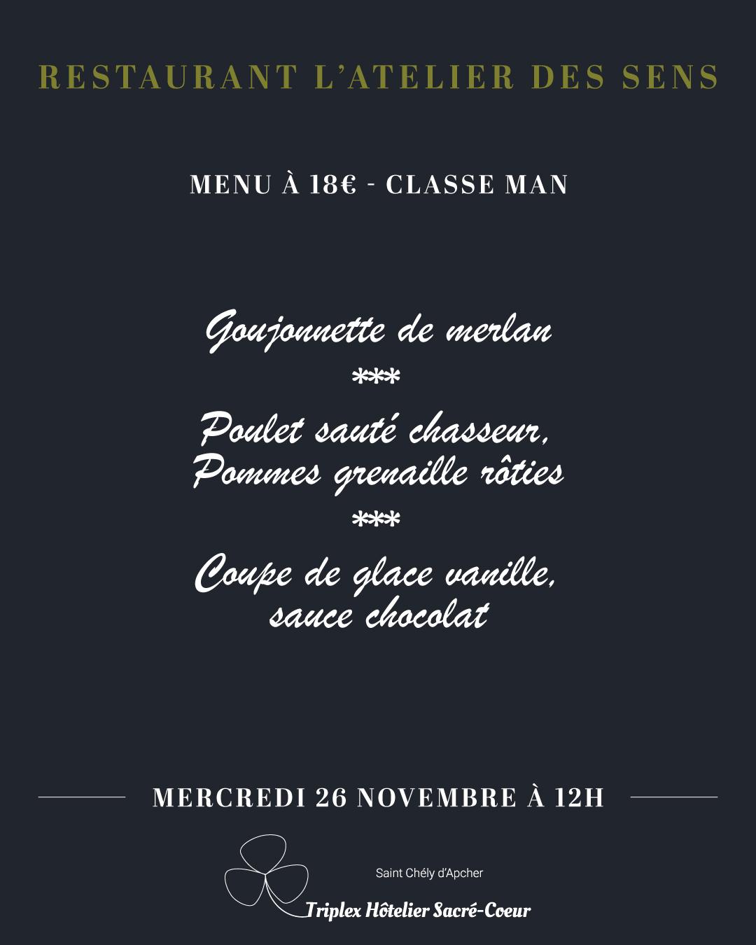 Nous vous rappelons que les menus proposés sont uniques et qu'il ne nous est pas possible de vous proposer de plats alternatifs.