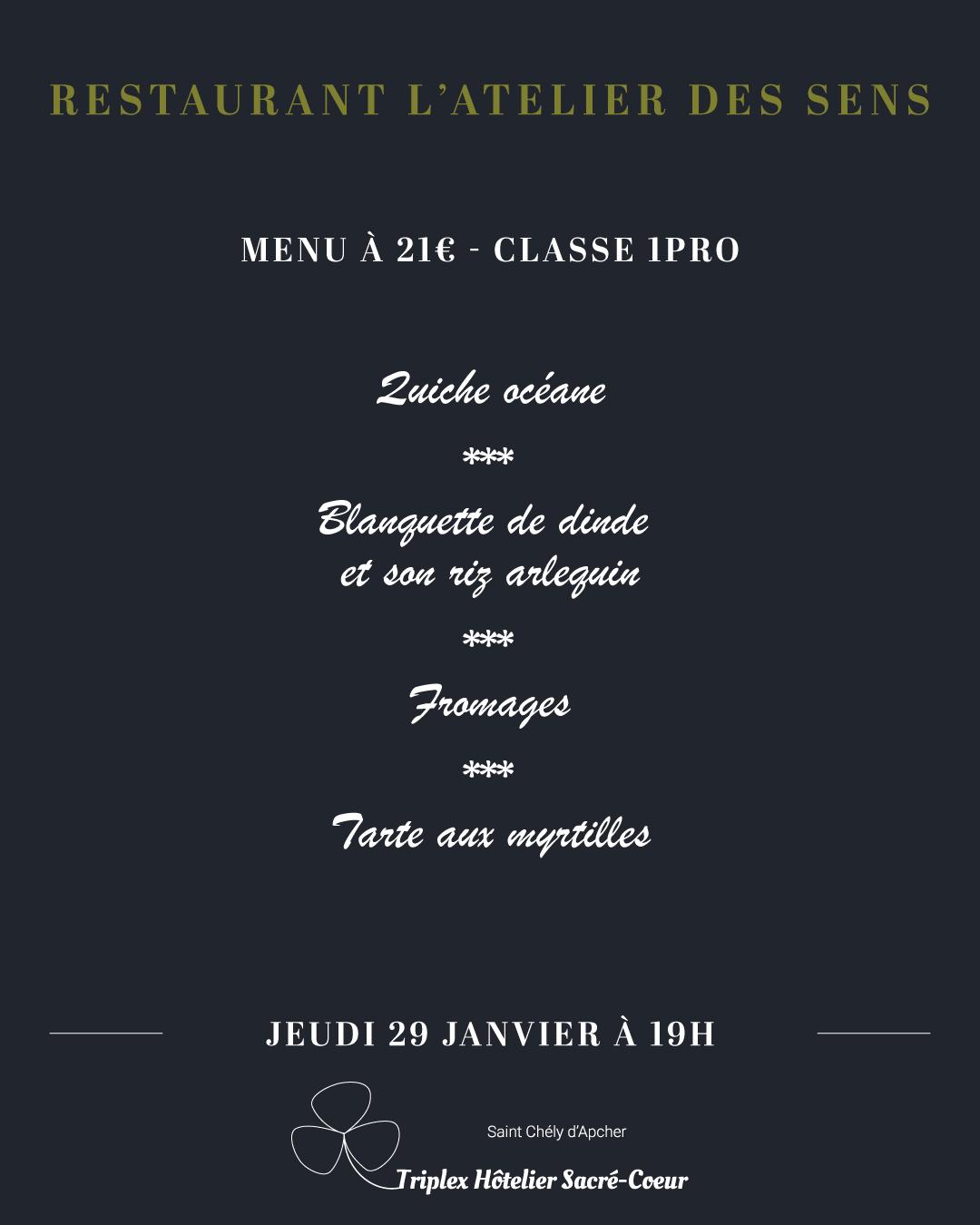 Nous vous rappelons que les menus proposés sont uniques et qu'il ne nous est pas possible de vous proposer de plats alternatifs.